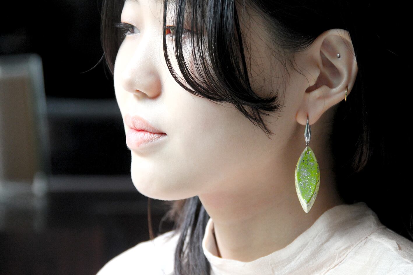 sucera(陶器)でできたパーツにマニキュアで絵柄をつけて頂き、