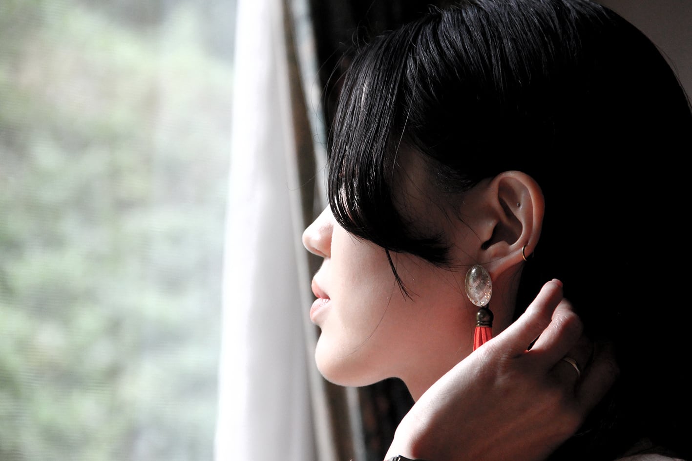 sucera(陶器)でできたパーツにマニキュアで絵柄をつけて頂き、