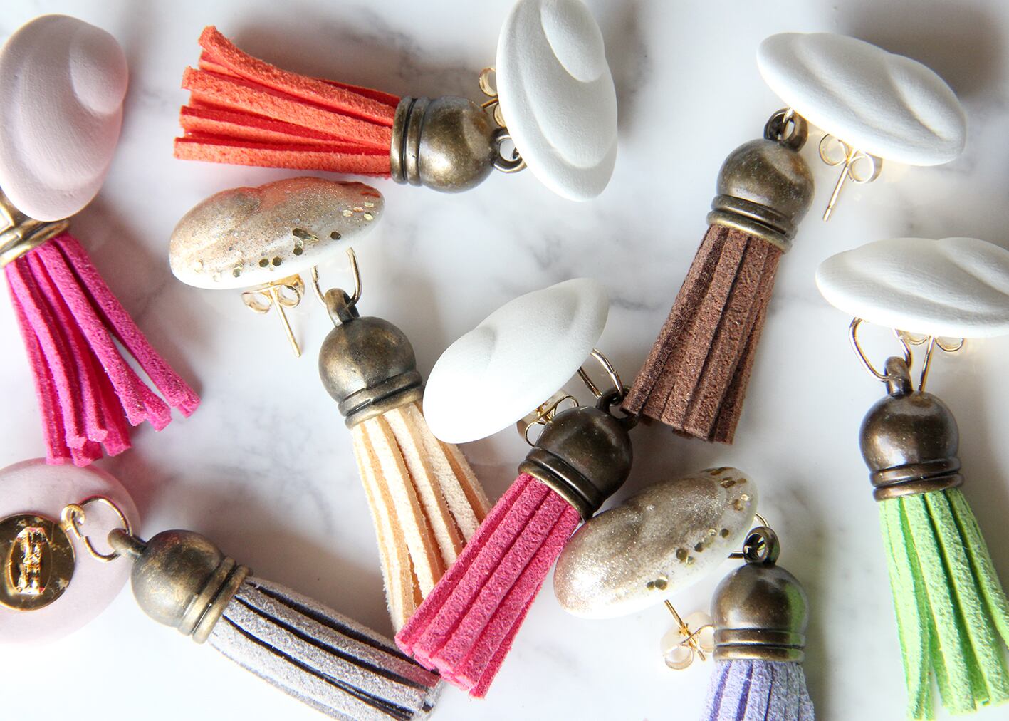 sucera(陶器)でできたパーツにマニキュアで絵柄をつけて頂き、
